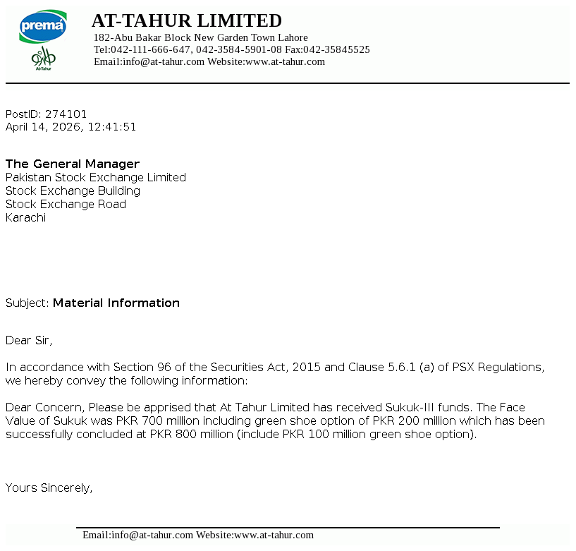 PREMA - At-Tahur Ltd. PSX Stock Snapshot | Fundamentals ,Technicals and Market data (PE Book Value Trading Signals EPS ROE ROA)