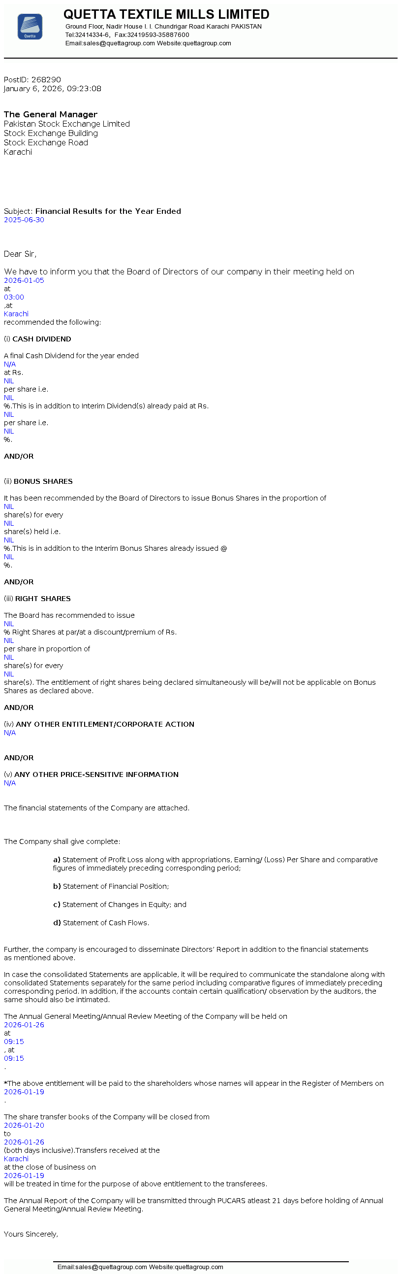 Latest Dividend