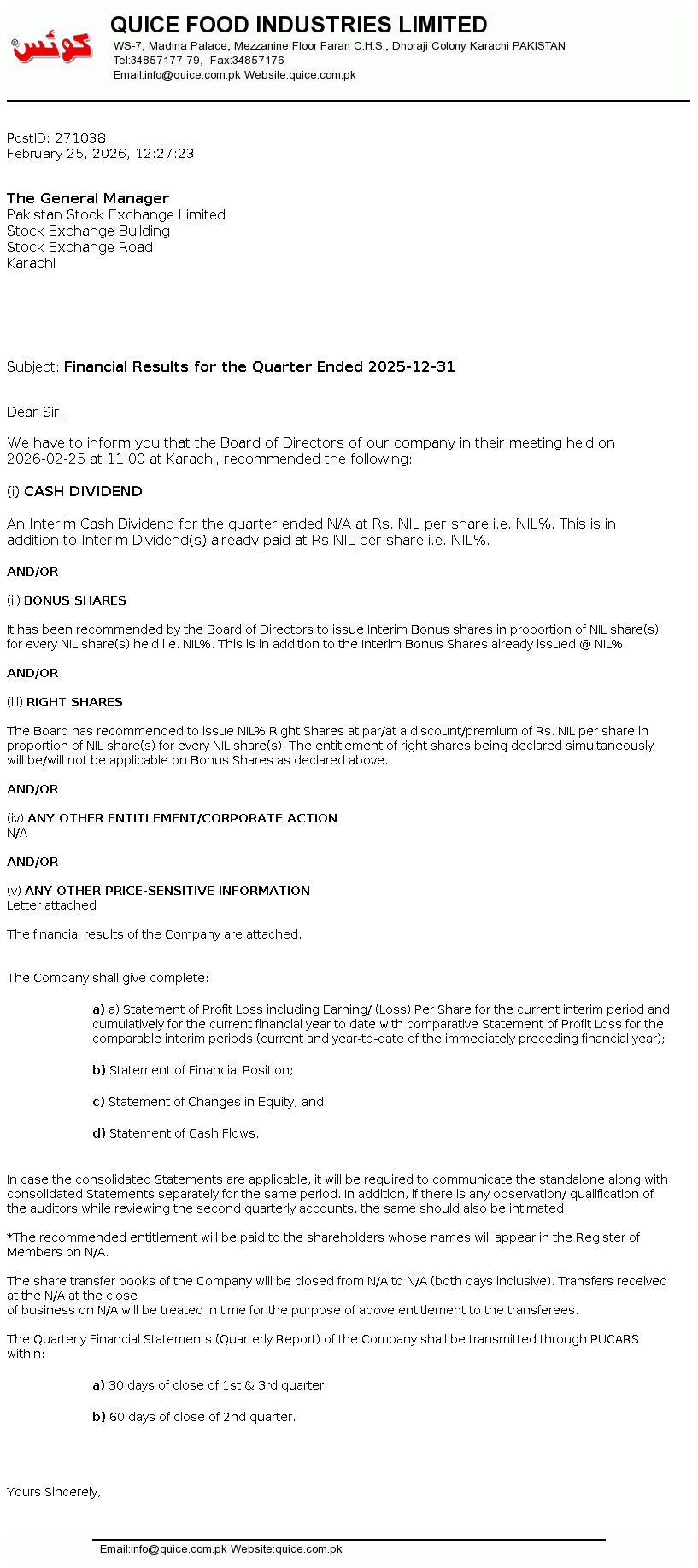 Latest Dividend