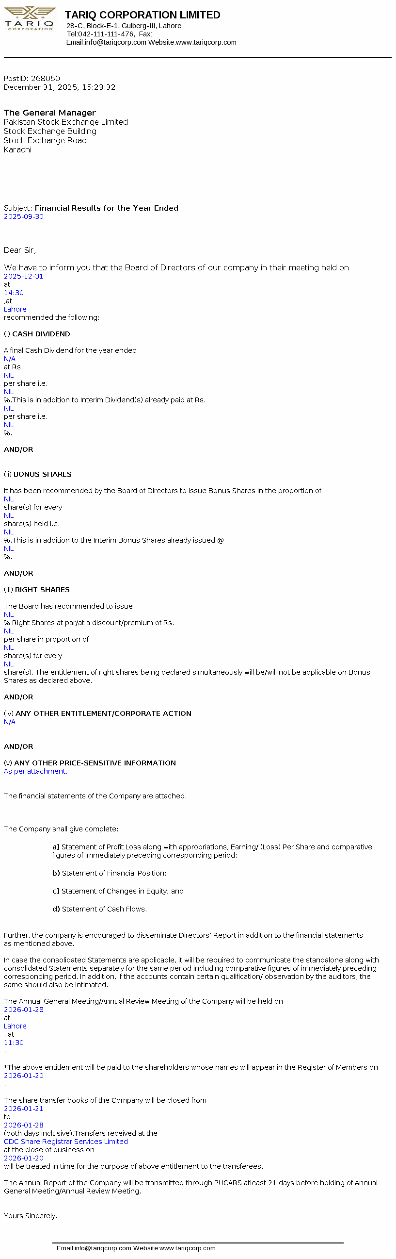 Latest Dividend